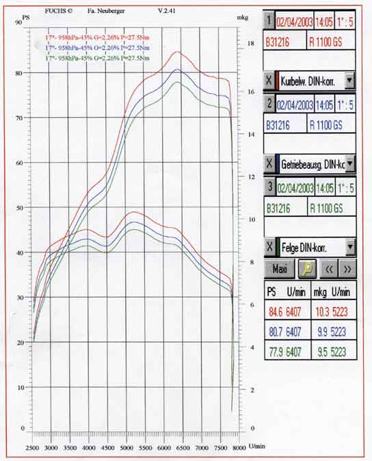 Leistungsdigramm nach dem Umbau des Auspuffs
