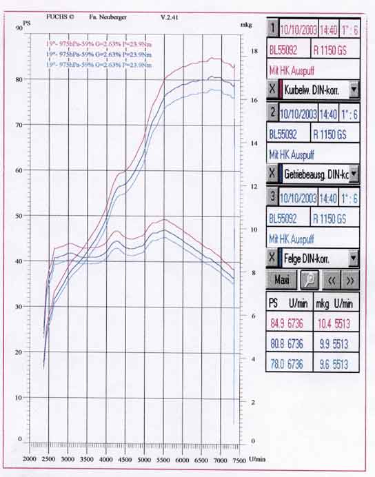 Leistungsdigramm nach dem Umbau des Auspuffs